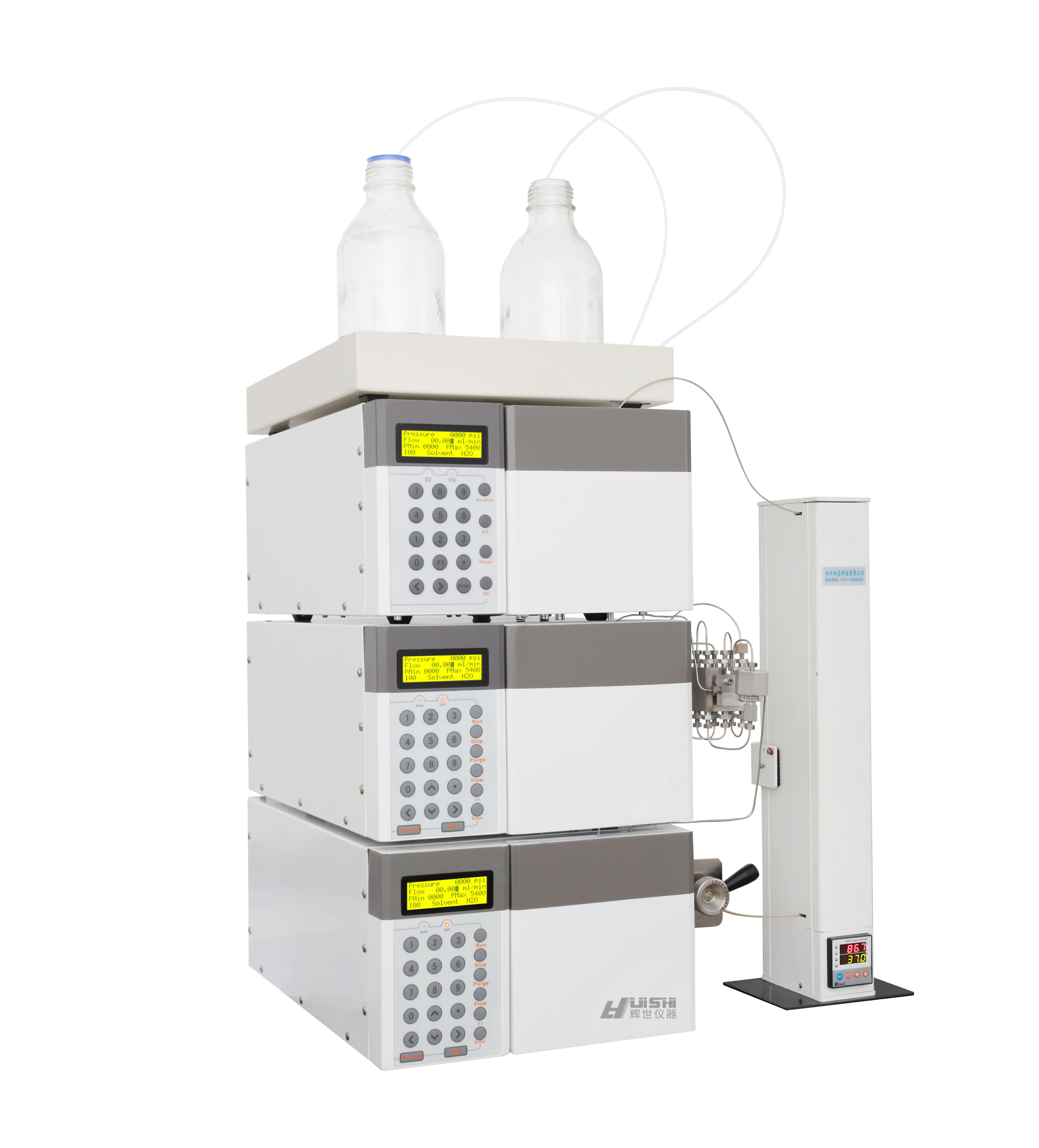 流量范围:0.001~9.999 mL/min 以0.001mL/min步长调节流量。 流量精度:RSD0.06% 压力脉动:0.1 Mpa (流量1mL/min,压力5~10Mpa) 泵的密封性压力为42MPa, 时间为10min,压力降0.5MPa。 最高工作压力: